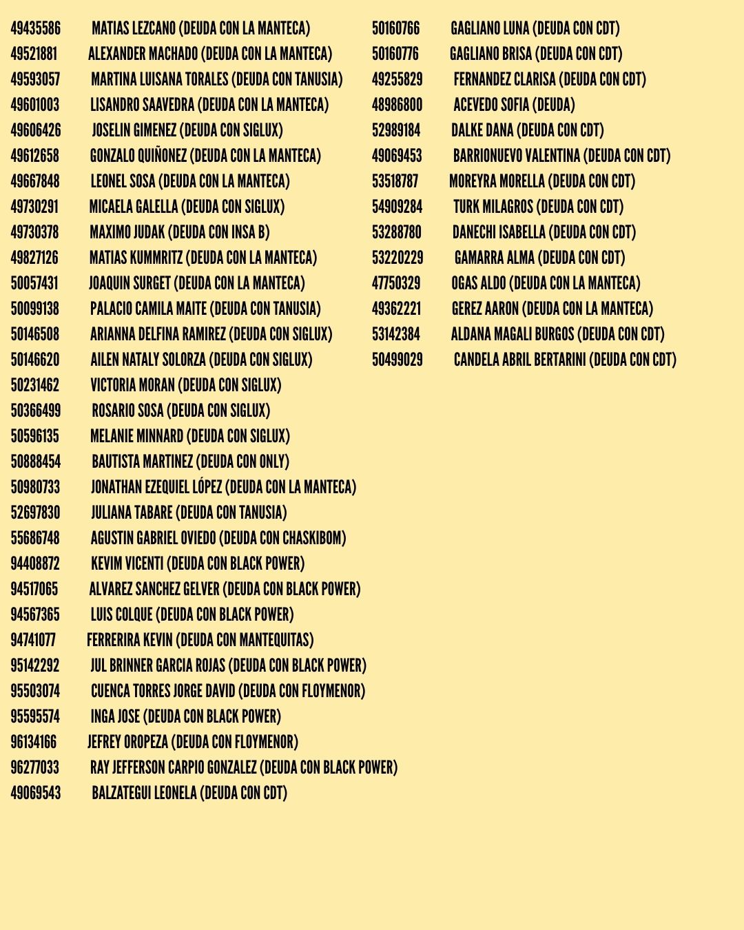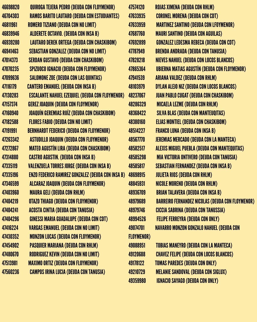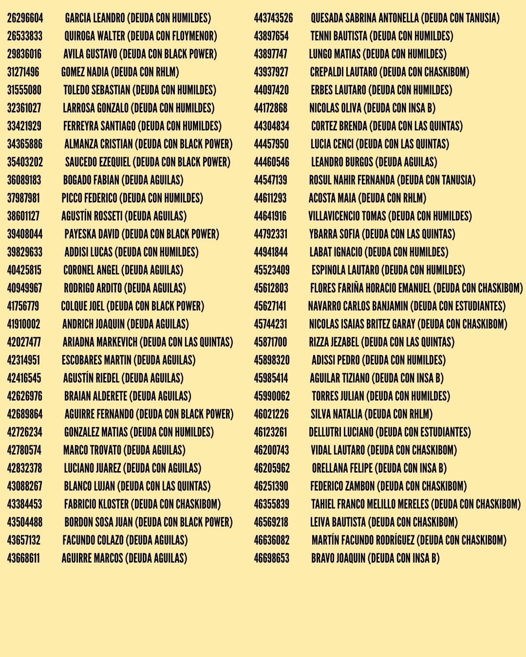 Jugadores con deuda registrada